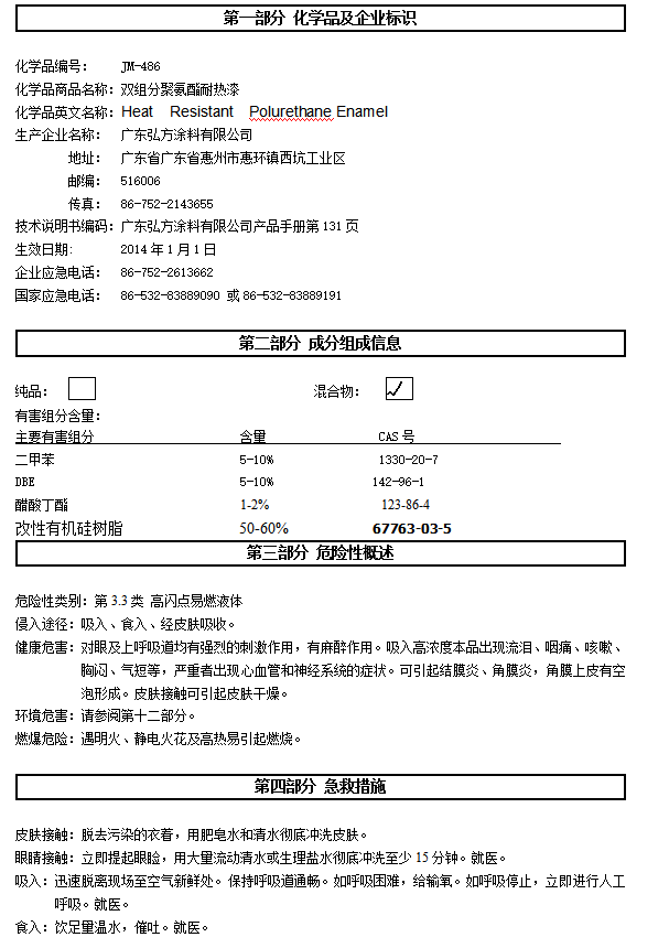 產(chǎn)品總述 JM-486是雙組份改性有機(jī)硅漆,主漆由聚酯改性有機(jī)硅樹脂和耐熱顏料、助劑等組成,