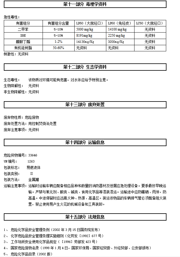 儲存和產(chǎn)品有效期 | 1年。產(chǎn)品儲存必須遵守國家規(guī)定。應(yīng)保存于陰涼、通風(fēng)良好的地方,避免過高的溫度。容器必須牢固密封。 |