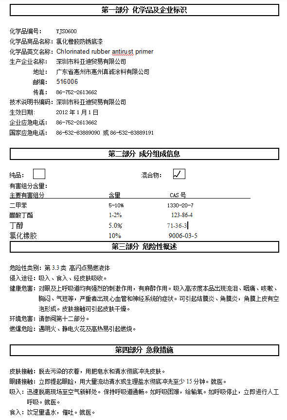 產(chǎn)品名稱              氯化橡膠防銹底漆